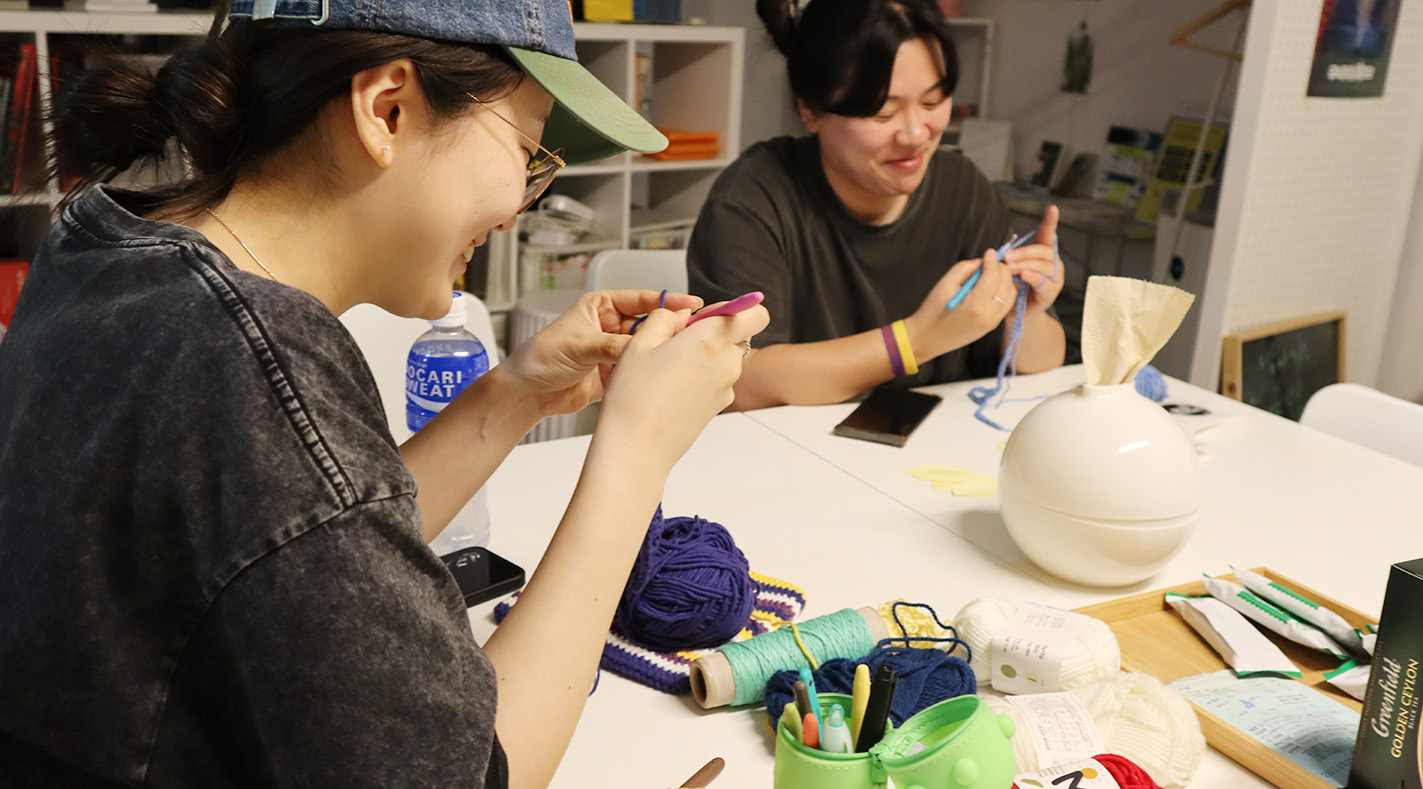 활동회원들이 모여 이야기에 귀 기울이며 서로 물들어 가는 시간🌈 이번 달 수다 숲에서는 '분투 속 진보와 성찰'이라는 주제로 회원들과 생각을 나눴습니다. 각자의 자리에서 열심히 살아가고 있는 아친들이 최근에 어떤 고민과 성찰을 하고 있는지 자연스럽게 이야기할 수 있었어요. 아친의 확장성과 연대의 감각이 여러 실의 연결과 비슷하다는 아이디어가 있어서, 뜨개를 배우는 시간도 함께 가졌답니다. 알록달록 실을 늘어놓고 수다 떠는 시간, 따뜻했습니다!
