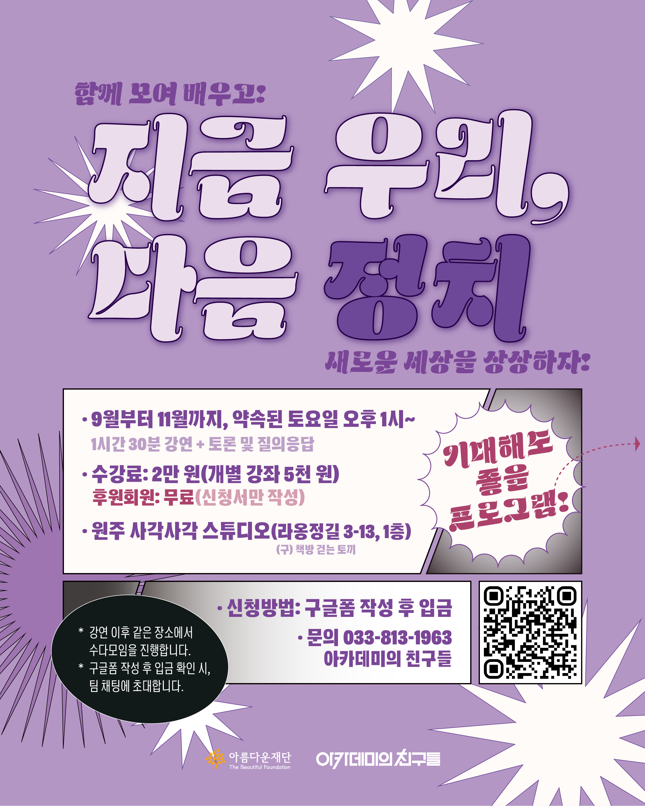 아카데미의 친구들academyfriend2023@gmail.com 주소 | 강원특별자치도 원주시 무실로 21, 2층 아친마당